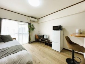 テレビ、冷蔵庫、洗濯機、電子レンジ、エアコンなど:滞在中すぐ生活できる。